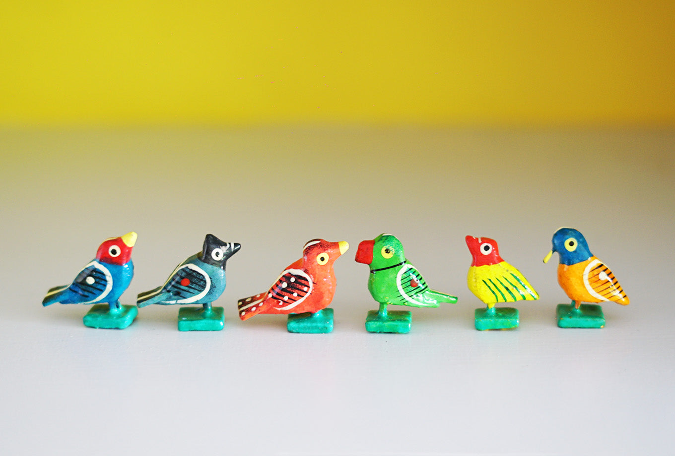 These beautifully hand carved and painted birds, animals and gods can be used as toys, ornaments or Christmas tree decorations.