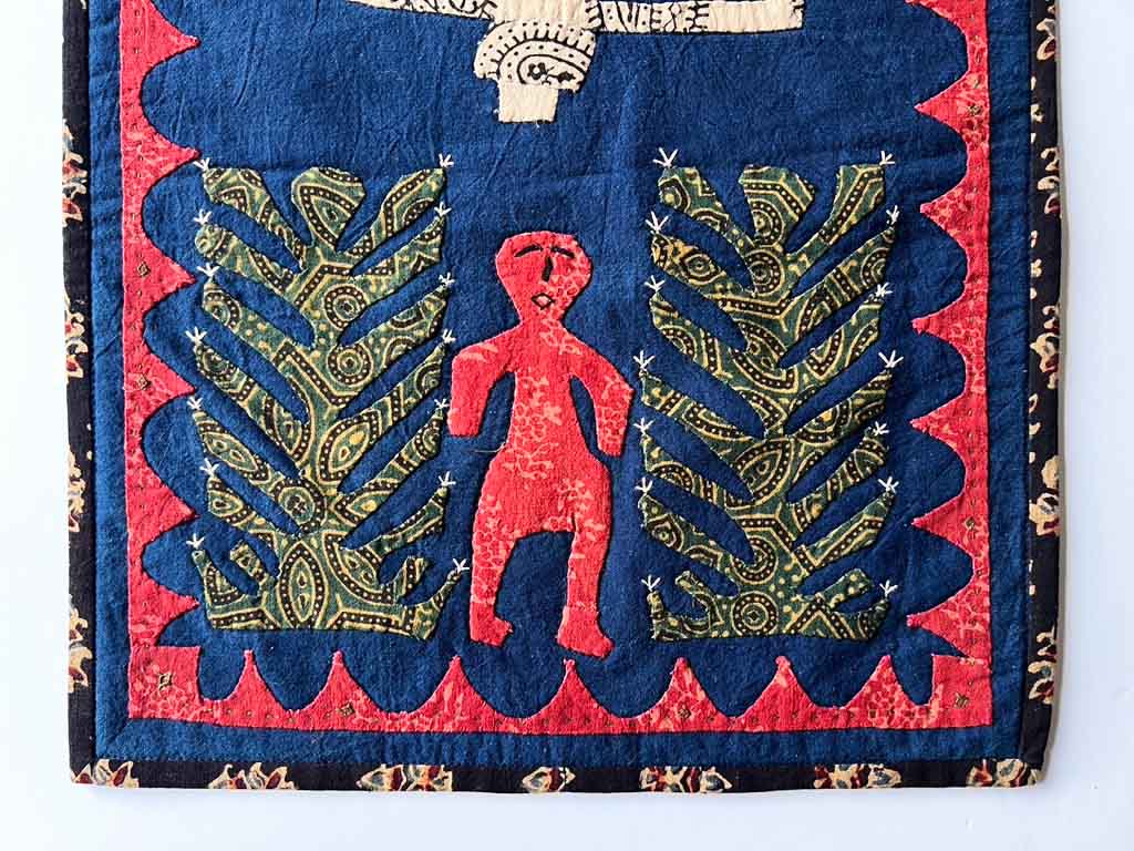 The people at the Kala Raksha organisation, who help promote and collect traditional crafts, suggested that the women start making simple aplique representaions of their every day life, telling stories through their art.