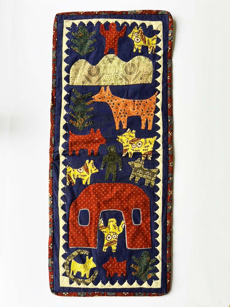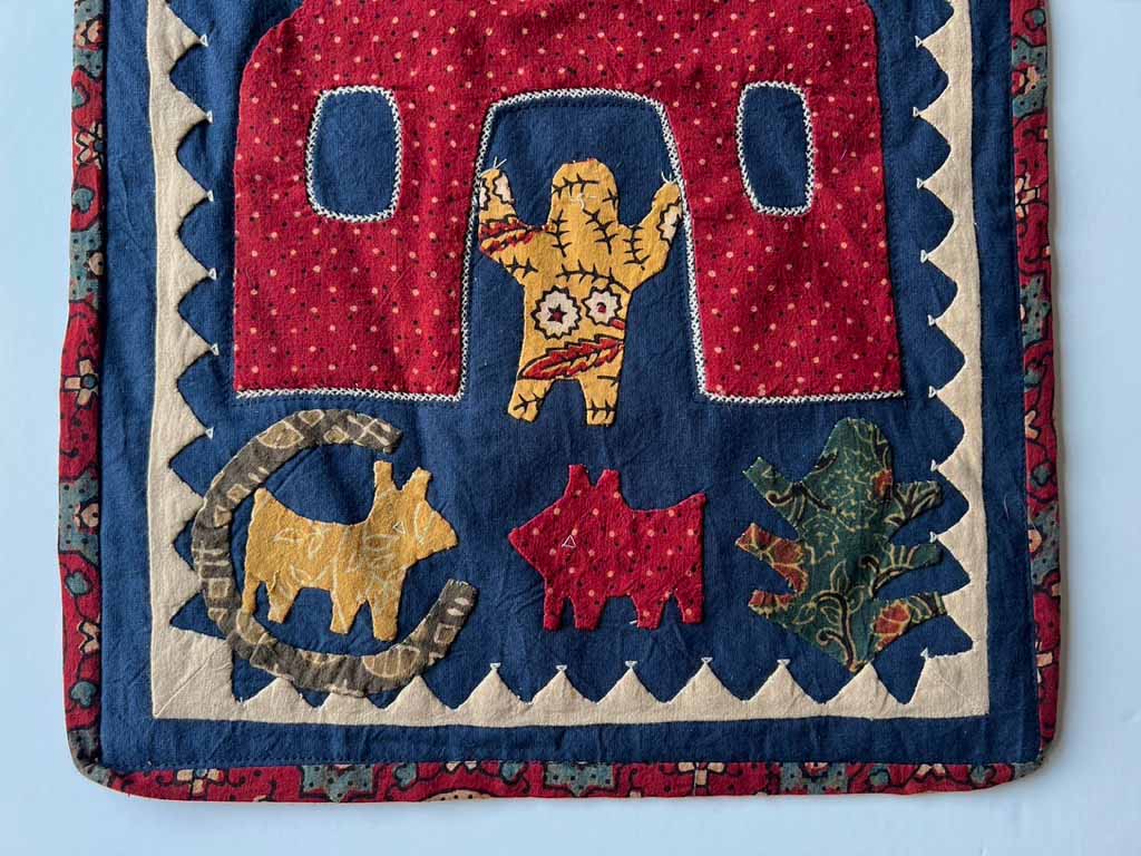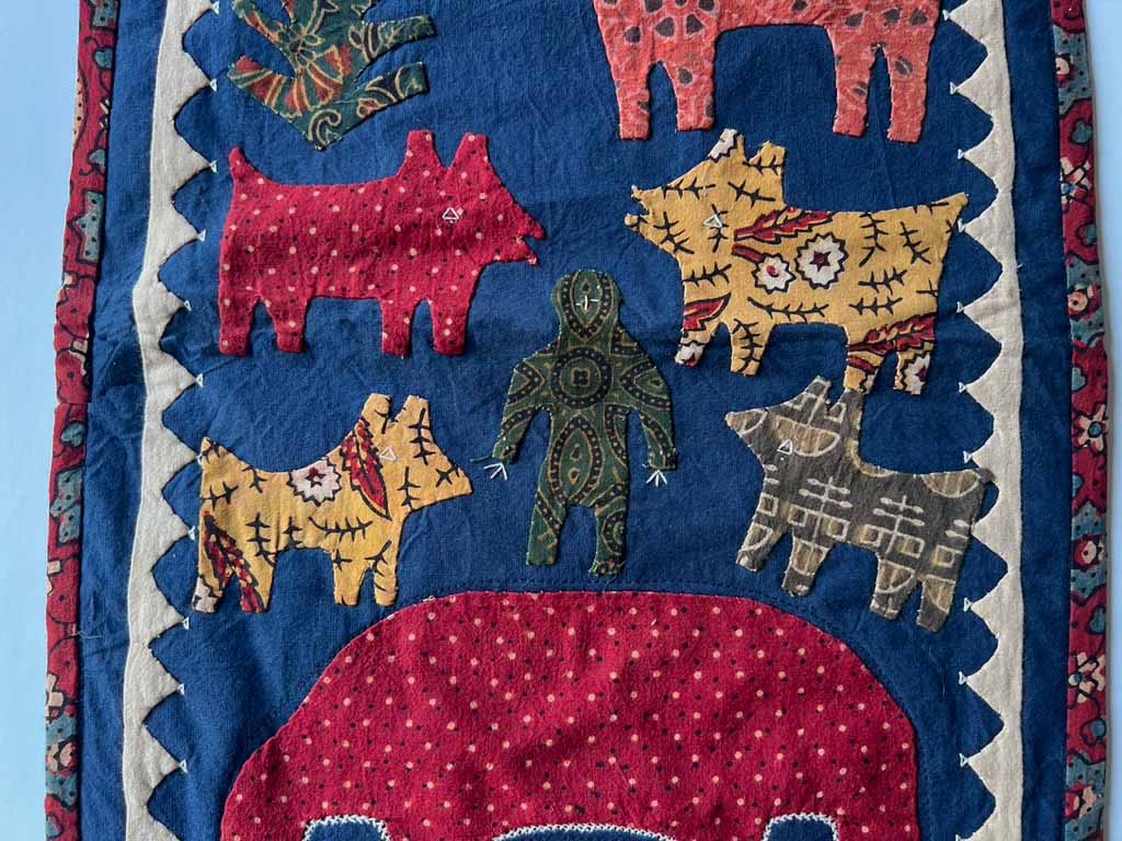 The people at the Kala Raksha organisation, who help promote and collect traditional crafts, suggested that the women start making simple aplique representaions of their every day life, telling stories through their art.