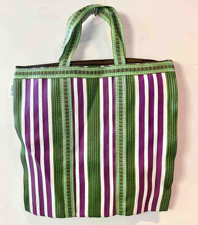 Beautiful shopping bags made in Varanasi from recycled plastic.