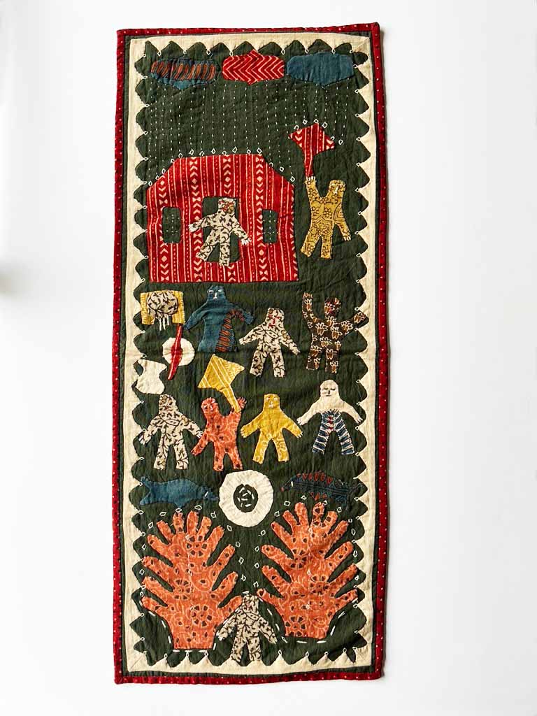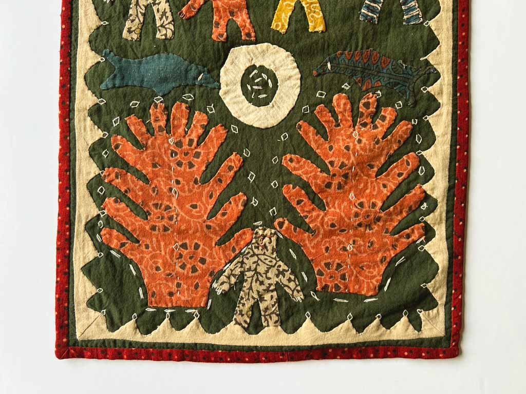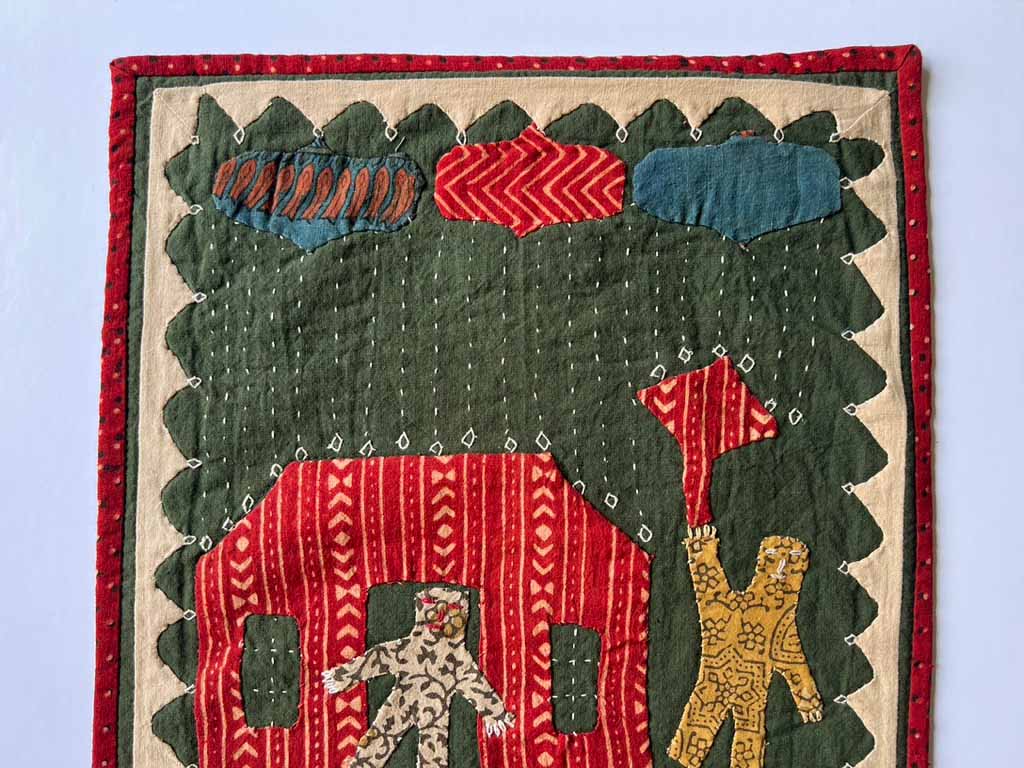 The people at the Kala Raksha organisation, who help promote and collect traditional crafts, suggested that the women start making simple aplique representaions of their every day life, telling stories through their art.